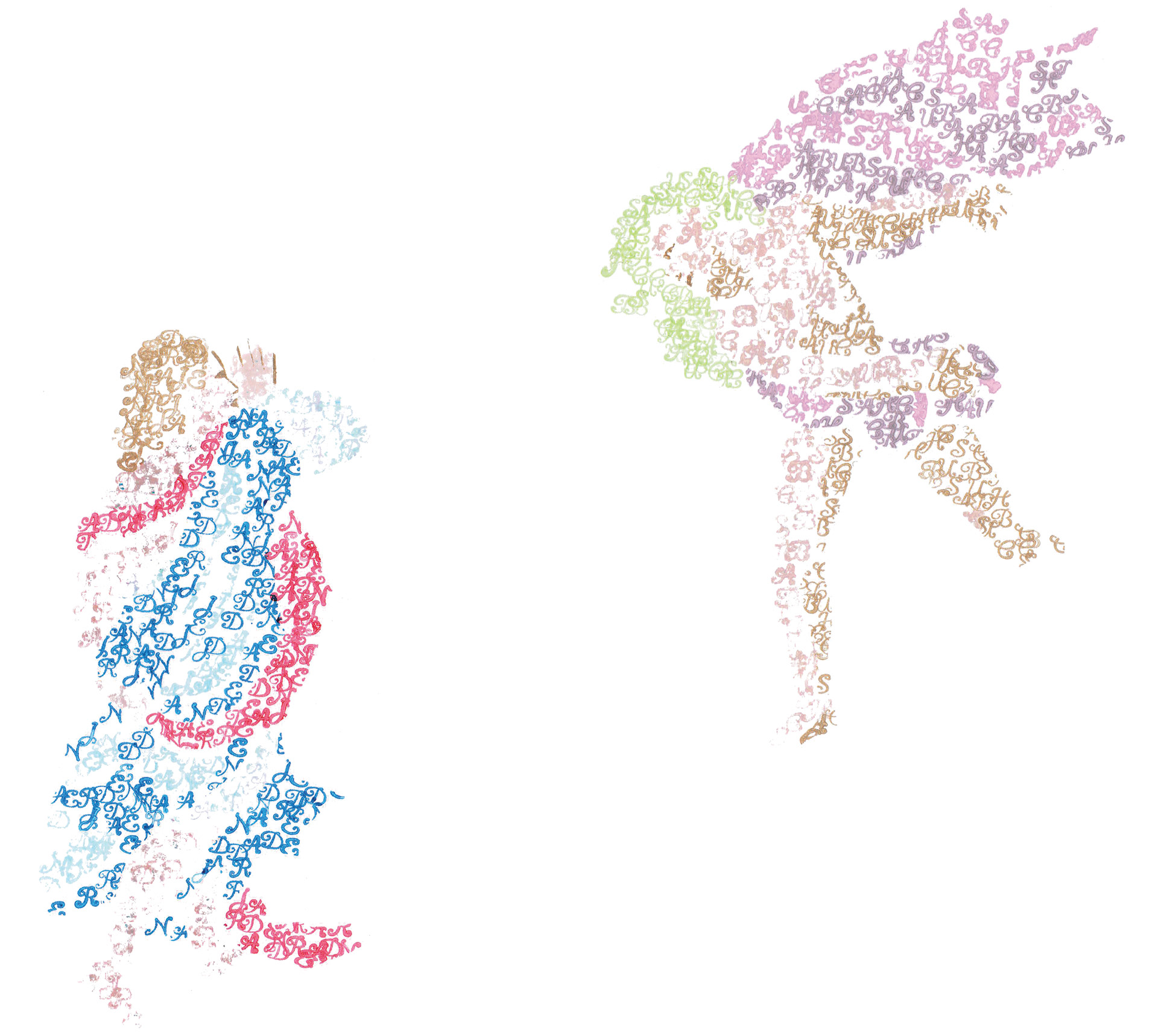 My concept uses the letters in their names to replicate the paintings as calligrams.